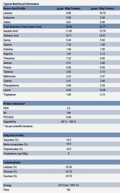 - Muy alto valor biológico, inapreciable contenido en lactosa, carbohidratos y grasas, siendo apta para vegetarianos.