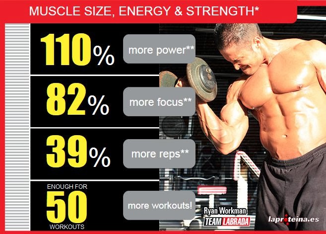 El secreto del éxito de Super Charge! Xtreme 4.0. es muy simple, ya que contiene los ingredientes activos de vanguardia más eficaces del momento. Cada ingrediente trabaja sinérgicamente con los demás. En otras palabras, mediante el uso de esta mezcla, se obtiene un efecto mucho mayor que la suma de los efectos de cada una de sus partes (como en 1 +1 +1 = 5). Además, todos los ingredientes activos de la fórmula de Super Charge! Xtreme 4.0. se enumeran claramente en la etiqueta con sus correspondientes cantidades. A diferencia de otros suplementos, los ingredientes que no se ocultan bajo el sospechoso nombre de "mezcla patentada". Con Super Charge! Xtreme 4.0. podrás saber con certeza en qué estas gastando tu dinero. A esto nosotros lo llamamos como la "verdad en el etiquetado" y es una parte importante de la filosofía de Labrada Nutrition.