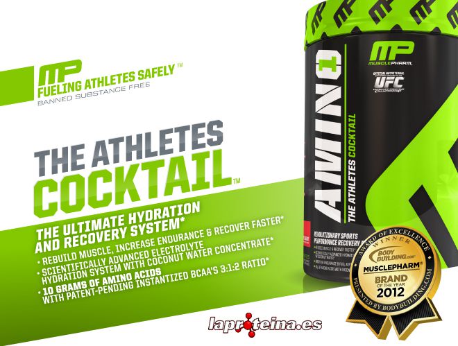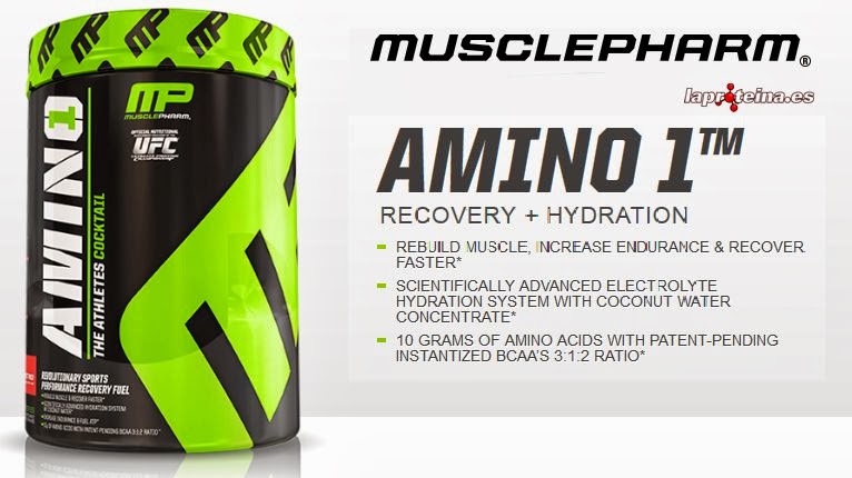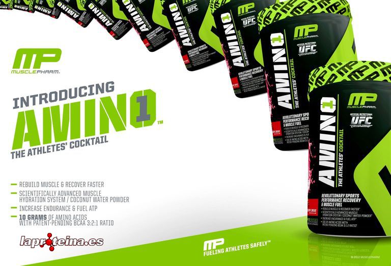 Amino 1™ de Muscle Pharm® es un revolucionaria bebida deportiva para la hidratación y recuperación muscular especialmente formulada para atletas de todas clases que contiene BCAAs instantanizados de rápida absorción en una proporción 3:1:2, junto con un sistema para aumentar la energía celular y el ATP, y un sistema con aminoácidos, electrolitos y otros ingredientes para favorecer la hidratación celular.