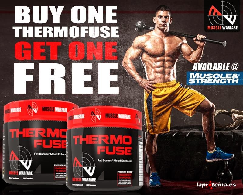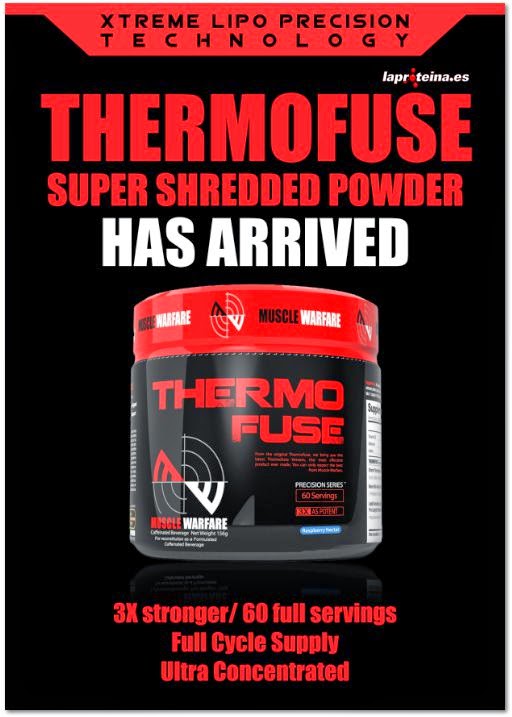 Prepárate para experimentar el increíble poder de ThermoFuse™, el quemador de grasa de Muscle Warfare con una nueva tecnología estimulante a base de aminoácidos específicos. Esta potente versión está diseñada para la destrucción masiva de las células de grasa, a la vez que te proporciona una increíble energía y con un alucinante poder termogénico. Tal y como su nombre indica, ThermoFuse™ te ayuda a encender el fusible termogénico interior de tu cuerpo para empezar a quemar la grasa a un ritmo increíblemente rápido. Tómalo como se sugiere, en combinación con una dieta adecuada y un programa de ejercicio físico y los resultados pueden ser extraordinarios.