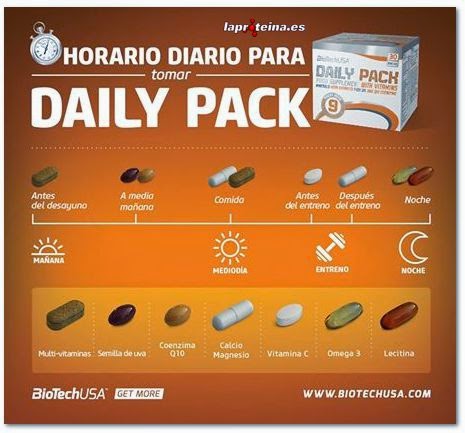 Daily Pack de BioTech USA es un suplemento total que contiene siete fórmulas individuales en dosis extremas en un solo producto, proporcionándote un potente refuerzo para la salud general del organismo que incluye un multivitamínico y multimineral muy completo, calcio y magnesio, coenzima Q10, extracto de semilla de uva, aceite de pescado Omega 3, lecitina de soja y vitamina C.