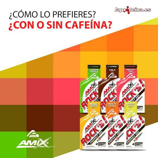 Rock‘s Energy Gel with Caffeine nos aporta energía de forma inmediata durante el ejercicio físico intenso y se presenta en dos formatos diferentes, uno con cafeína y otro sin cafeína, dependiendo del objetivo del deportista en el momento de la ingesta.