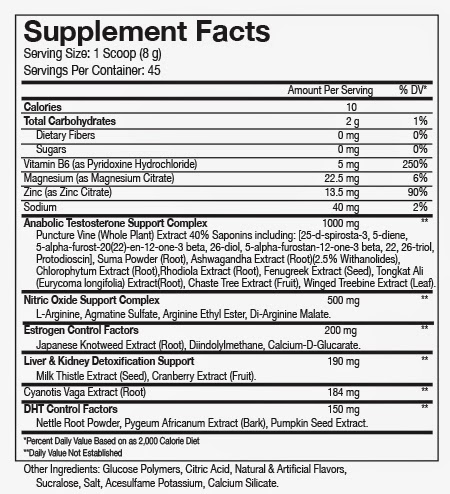 La fórmula Super Test® Powder contiene cuatro formas diferentes de arginina para maximizar los niveles de óxido nítrico para promover el crecimiento muscular y la resistencia. También tiene unos potentes componentes inhibidores para apoyar la reducción del estrógeno y de la hormona DHT.