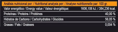 Se trata de un suplemento deportivo que te aporta la máxima energía (rápida, constante y prolongada), una alta síntesis proteica con péptidos de caseína y una mezcla de aislado de suero e hidrolizado de suero, el máximo transporte (peptídicos con taurina y glicina) y con mimetizadores insulícos para una mayor absorción de todos los nutrientes.