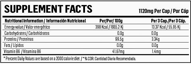 - Mega-cápsulas de 1120 mg (L-Leucina: 500 mg, L-Valina: 260 mg, L-Isoleucina: 240 mg).