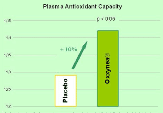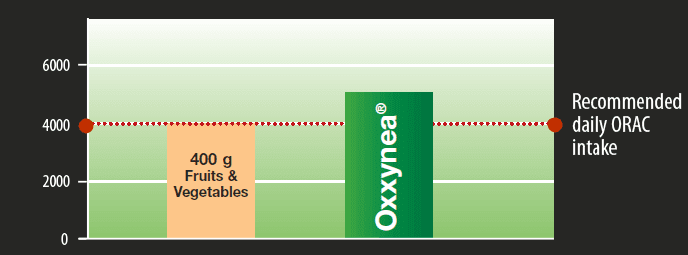 Oxxynea tiene un alto valor de ORAC y está muy recomendado en todas aquellas personas que no consumen unas 5-9 porciones de frutas y verduras al día, ya que puede proporcionar más unidades ORAC en una forma muy concentrada.