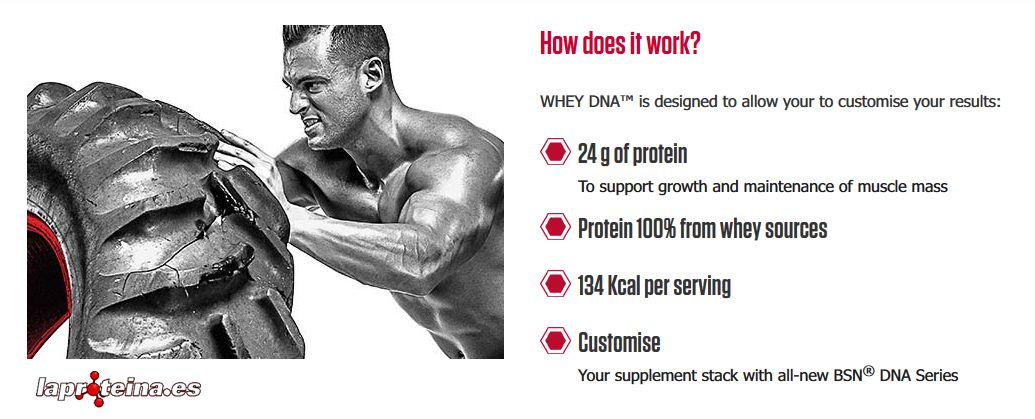 Whey DNA™ pertenece a la nueva línea DNA™ Series de BSN una línea versátil, en la que todos los productos se pueden bien utilizar solos, combinados entre ellos o añadidos a tus suplementos pre o post entrenamiento habituales, ¡escoge la combinación apropiada y lleva tus resultandos a otro nivel!