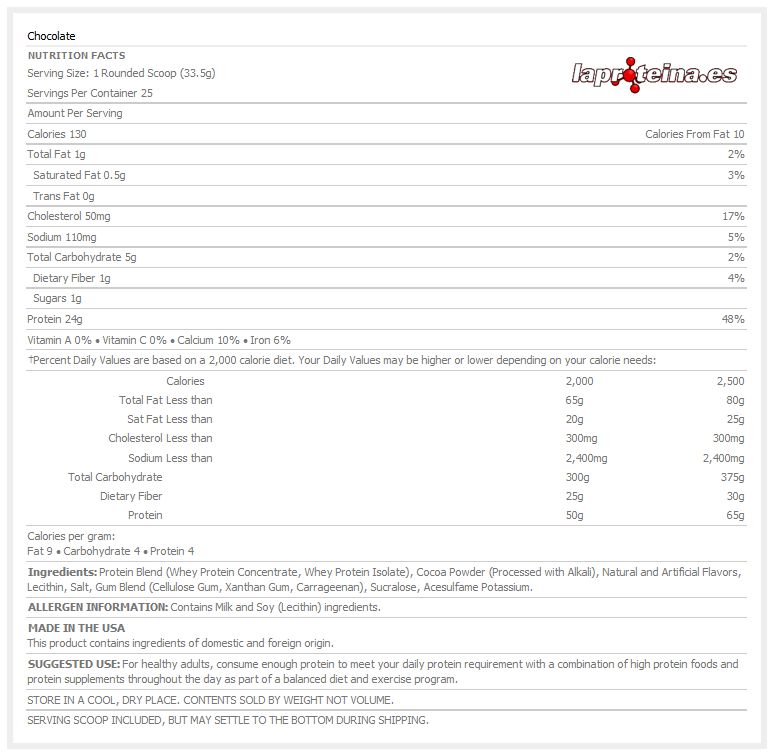 - Contiene una mezcla de concentrado y aislado de proteína de suero de alta calidad.