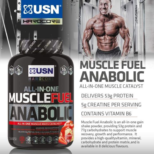 Muscle Fuel Anabolic de USN es un avanzado suplemento post-entreno que contiene una auténtica y poderosa fórmula "todo en uno" con todo lo necesario para ganar masa muscular.