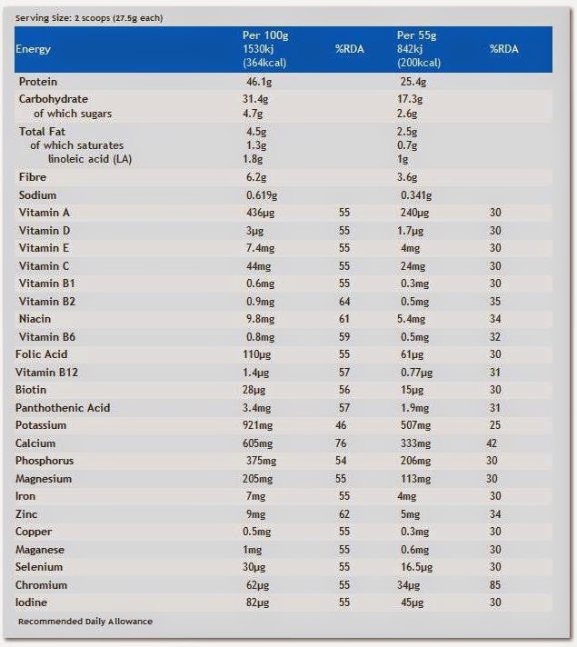 Como suplemento dietético para adultos sanos, mezclar un servicio de 55 gramos (2 cucharadas rasas) con entre 200 y 300 ml de agua de agua fría y agitar bien durante unos 30 segundos hasta obtener una textura homogénea.