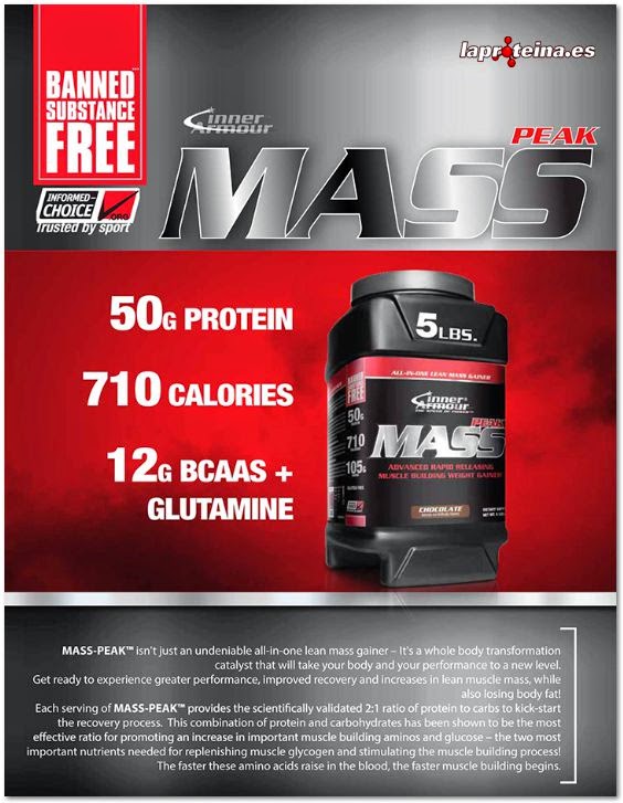 Mass Peak™ de Inner Armour es un avanzado ganador de peso todo en uno diseñado para aumentar la masa muscular de forma limpia gracias a una mezcla especial de carbohidratos ramificados y de cadena lineal con diferentes fuentes de proteínas, todo ello con un ratio ideal 2:1 entre carbohidratos y proteínas, y reforzado con una mezcla de ácidos grasos saludables.