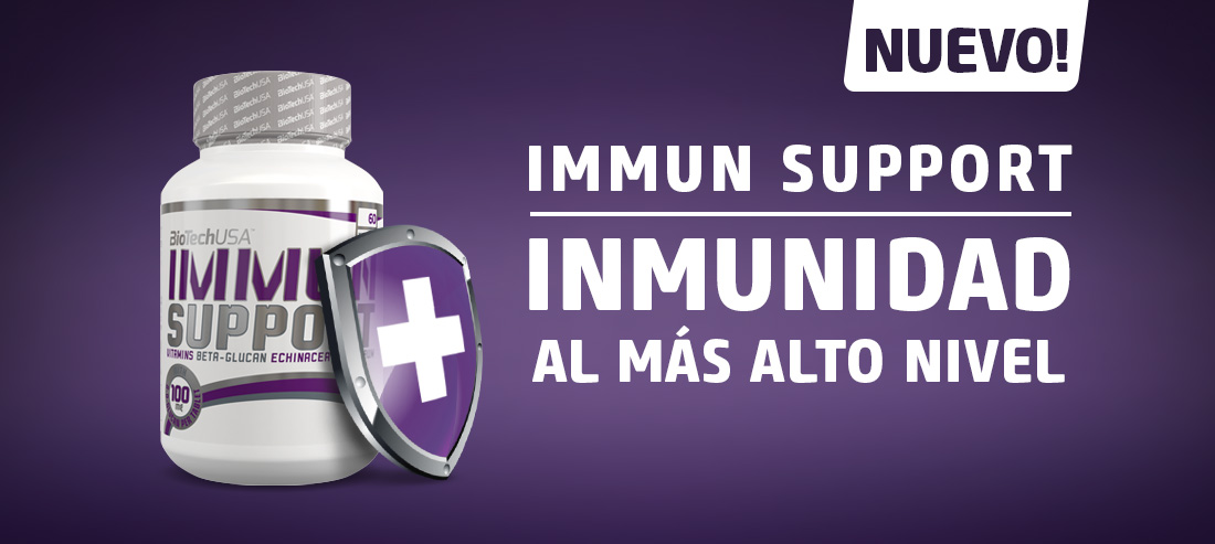 Immun Support de BioTech USA es un suplemento con una fórmula especial de vitaminas entre las que se incluyen las vitaminas C y B6 e importantes oligoelementos, como el calostro, los beta-glucanos de levadura o el extracto de Echinacea purpurea que contribuyen al óptimo funcionamiento del sistema inmunológico.