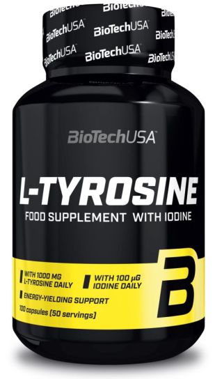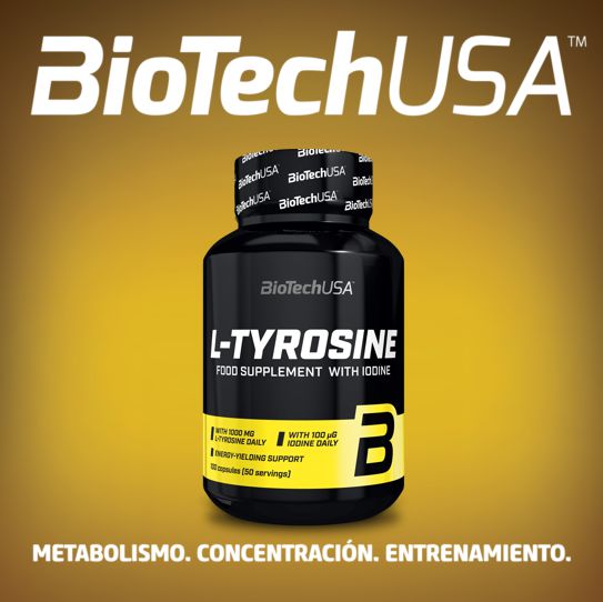 L-Tyrosine de BioTech USA es un suplemento en cápsulas que contiene 1.000 mg de L-tirosina por dosis de 2 cápsulas, potenciado con yodo para un mejor funcionamiento.