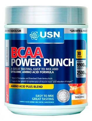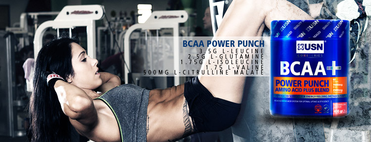 BCAA Power Punch de USN es una fórmula en polvo de aminoácidos de cadena ramificada diseñada para una rápida recuperación tras un entrenamiento intenso que ha sido potenciada con L-citrulina malato, L-Glutamina y potenciadores de la absorción.
