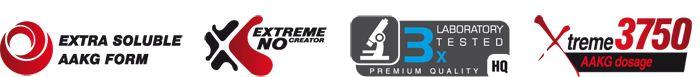 75% L-arginina alfa-ketoglutarato (AAKG), regulado de la acidez – ácido cítrico, aromas, edulcorantes – acesulfame K, sucralosa, regulador de la acidez - ácido málico, colorantes: riboflavina (para sabor limón), riboflavina, beta-caroteno (para sabor naranja), carmín (para sabor fruit punch).