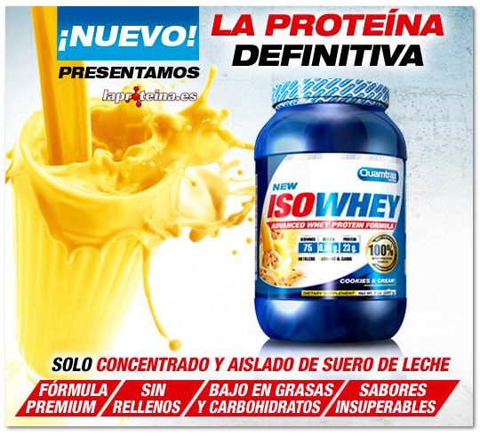 IsoWhey de Quamtrax Nutrition es un suplemento proteico en polvo que contiene una mezcla de aislado y concentrado de suero de leche obtenido por microfiltración de flujo cruzado, un proceso por el que se consigue una proteína que mantiene un valor biológico muy alto, pero con unas bajas concentraciones de lactosa, grasa y carbohidratos.