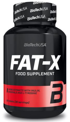 Fat-X de BioTech USA es un suplemento en tabletas que contiene una fórmula quemadora de grasas libre de estimulantes diseñada con extractos herbales, inulina, HCA, L-tirosina, zinc y otros minerales para potenciar el metabolismo de las grasas, bloquear carbohidratos y grasas, y reducir el apetito al mismo tiempo.