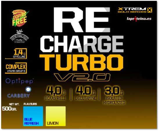 Recharge Turbo V2.0 de Nutrytex Xtrem dentro de su nueva línea Gold Series, es una fórmula diseñada para optimizar los procesos de recuperación muscular después del entrenamiento que contiene una combinación estudiada con hidrolizado de aislado de suero de leche de rápida absorción OPTIPEP®, L-Glutamina, aminoácidos de cadena ramificada, citrulina malato, electrolitos y un complejo de vitaminas del grupo.