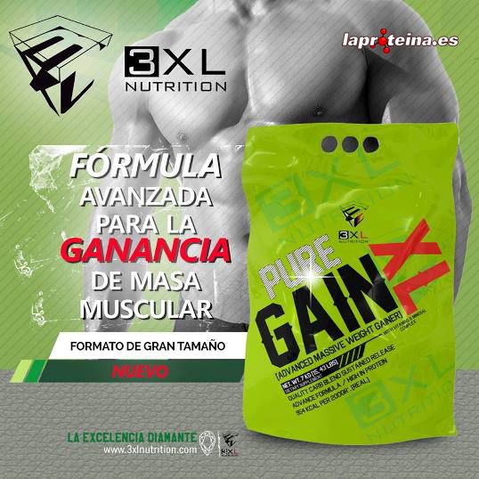 Pure Gain XL de la nueva marca 3XL® Nutrition es el subidor de peso más avanzado con un porcentaje 17/6 entre carbohidratos y proteína para un máximo anabolismo muscular reforzado con vitaminas y minerales.