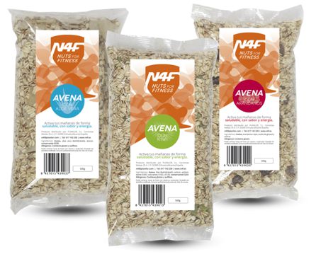 Avena con kiwi, avena con arándanos y avena con aloe vera. Copos de avena de máxima calidad obtenidos del prensado del grano de avena refinado.