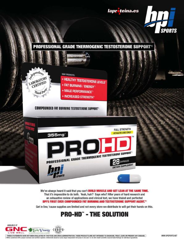 Pro-HD™ de BPI Sport es suplemento potenciador de la testosterona y termogénico al mismo tiempo.