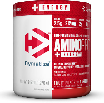 Amino Pro + Energy de Dymatize Nutrition es un suplemento en polvo avanzado que te proporciona 5,5 gramos de una combinación de aminoácidos de cadena ramificada solubles instantáneos, taurina y citrulina en forma libre, con electrolitos y una dosis de cafeína para proporcionar un impulso de energía.