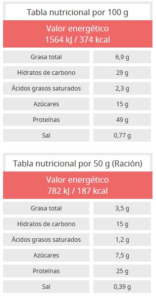 - Alto contenido en proteínas, casi 25 gramos por ración.