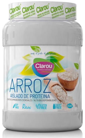 Proteína de Arroz de Clarou es una fórmula proteica que contiene única y exclusivamente el 100% de aislado de proteína de arroz en dos versiones, una con sabor a chocolate y otra neutra sin sabor.