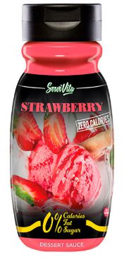 Sirope de Fresa de Servivita es un rico sisirope sin calorías con sabor a fresa ideal para añadir a helados, pasteles y postres de todo tipo, a los que darás un sabor delicioso, pero sin sumar ni una sola caloría a tu línea.
