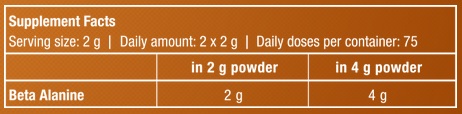 - Proporciona 2.000 mg de beta alanina por dosis.