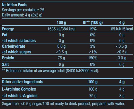 L-Arginine Powder de BioTech USA es un suplemento que contiene un complejo de arginina (L-arginina, L-arginina AKG, L-arginina HCl) en polvo, un aminoácido esencial indispensable para producción del óxido nítrico.
