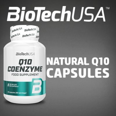 Q10 Coenzyme 100 mg de BioTech USA es un suplemento nutricional que proporciona 100 mg de coenzima Q10 de alta calidad y derivada exclusivamente de fuentes naturales por cápsula.