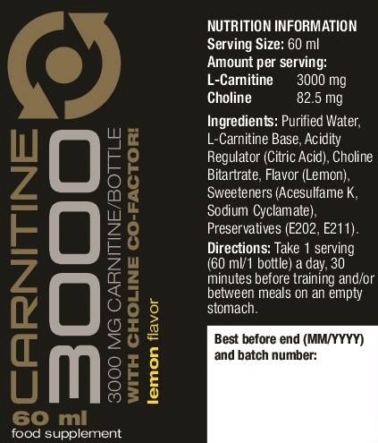 - 3000 mg de L-Carnitina por vial de 60 ml.
