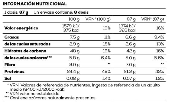 Como suplemento dietético para adultos sanos, mezclar 87 gramos (6 cucharadas soperas colmadas) de polvo con 125 ml de agua o leche sin lactosa o vegetal.