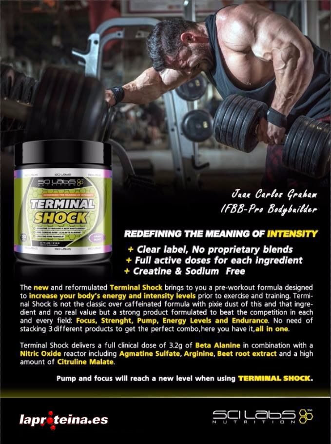 Terminal Shock de Sci Labs Nutrition es un nuevo suplemento de pre-entrenamiento que ha sido reformulada con los más modernos y efectivos compuestos con el fin de aumentar los niveles de energía de tu cuerpo así como el nivel de intensidad previo al entrenamiento deportivo.
