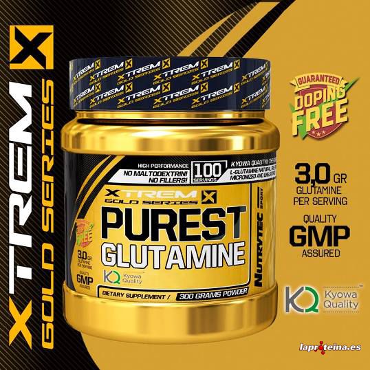 Purest Glutamine de Nutrytec Xtrem dentro de su nueva línea Gold Series, es una fórmula anticatabólica que contiene L-glutamina en polvo natural, micronizada, sin sabor y de calidad farmacéutica producida por Kyowa™, líder mundial en aminoácidos.