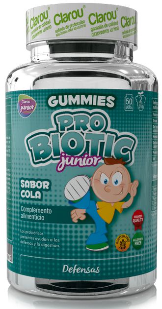 Pro Biotic Junior de Clarou dentro de su línea especial para niños Clarou Junior es un suplemento dietético en forma de sabrosas gominolas con sabor a cola a base de vitaminas y probióticos con el objetivo de proteger el sistema inmunológico, favoreciendo sus defensas y ayudándoles en la digestión.