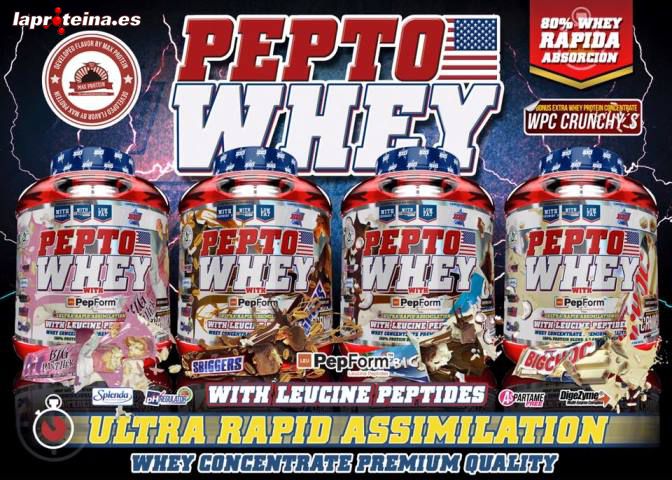 Los sabores de la nueva Pepto Whey tratan de emular los espectaculares sabores de las clásicas barritas americanas de éxito mundial. Pepto Whey está disponible en sabor BigChoc, SBiggers, BigPhanter y BountBig. No te conformes con menos. No sólo es una cuestión de tamaño... Tú quieres mucho más, y Pepto Whey te lo da.