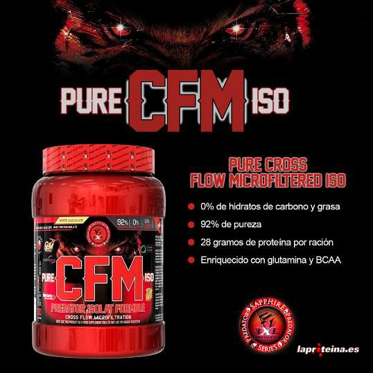 Pure CFM Iso de 3XL® Predator dentro de su línea Shapire Series es una proteína de aislado de suero de leche con un 92% de pureza y un 0% de hidratos de carbono y grasa lo que te garantiza unos 28 gramos de proteína de la mejor calidad posible en aislado de suero.