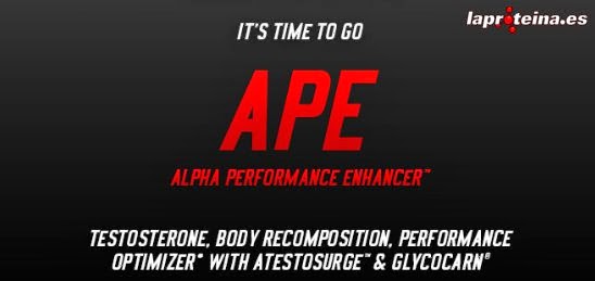 Si tu actual potenciador de la testosterona te está fallando, y no te proporciona los resultados que mereces, no pierdas más el tiempo, es hora de ir a por todas, es hora de confiar en APE™ (Alfa Performance Enhancer) el potenciador del rendimiento alfa, con el que aumentarás tu testosterona, mejorarás tu composición corporal, y optimizarás tu rendimiento. APE™ incluye en su fórmula los últimos avances científicos como TestoSurge™, GlycoCarn® y EuryGold™ entre otros.