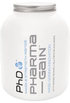 Ingredientes: PhD Pharma-Gain mezcla de proteínas (concentrado de proteínas de suero, concentrado de proteínas de soja, proteína de huevo blanco, aislado de proteínas de suro, l-glutamina, BCAA´s –Leucina, Isoleucina, Valina-), maltodextrina, fructosa (GI rating 23), maizena, goma guar, saborizantes, aceite de oliva, acido cítrico, color natural: carmin, harina de lino, endulzante: sucralosa.