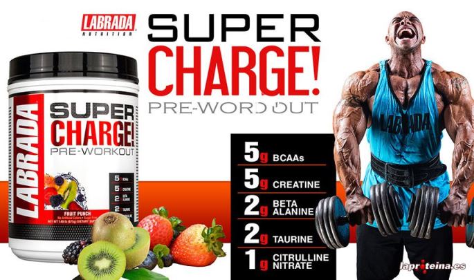 La nueva versión 2.020 del exitoso pre-entreno de Labrada ahora se llama Super Charge! Pre-Workout.