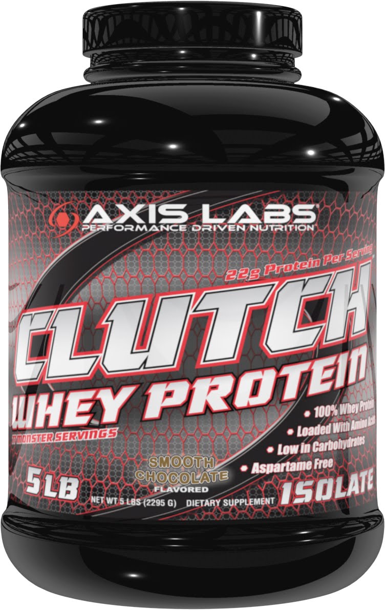 La proteína de suero CLUTCH WHEY de AXIS Labs es 100% proteína de suero, incluyendo aislado de suero, concentrado micro ultra filtrado de suero, y péptidos de suero.