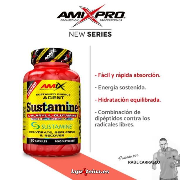 Sustamine® de Amix™ Advanced Nutrition es un complemento alimentico basado en un ingrediente recuperador único producido a partir de un método de fermentación patentado que crea un dipéptido formado por la combinación de L-Glutamina y L-Alanina.