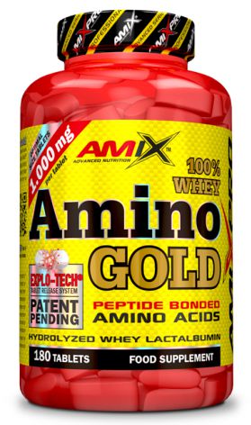 100% Whey Amino Gold de Amix™ Advanced Nutrition es un complemento alimenticio en tabletas que proporciona 6.000 mg por dosis de 6 tabletas de aminoácidos procedentes de proteína de suero de leche pura hidrolizada de la más alta calidad.