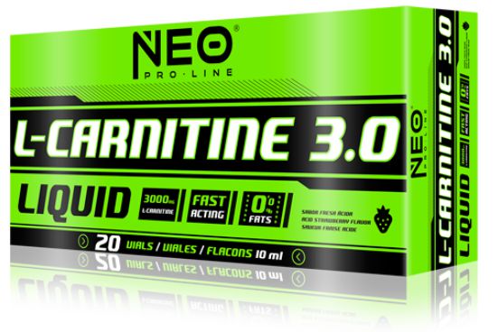 L-Carnitine 3.0 de NEO Pro Line es un suplemento que te proporciona 3.000 mg de L-carnitina tartatro en cómodos viales líquidos monodosis de 10 ml fácilmente transportables a cualquier lugar para que puedas tomar tu dosis de carnitina donde quieras y en el momento que necesites.