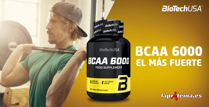 BCAA 6000 de BioTech USA es un suplemento en tabletas que proporciona 6.000 mg de aminoácidos de cadena ramificada - isoleucina, leucina y valina – en una proporción de 2:1:1 por servicio de 4 tabletas.