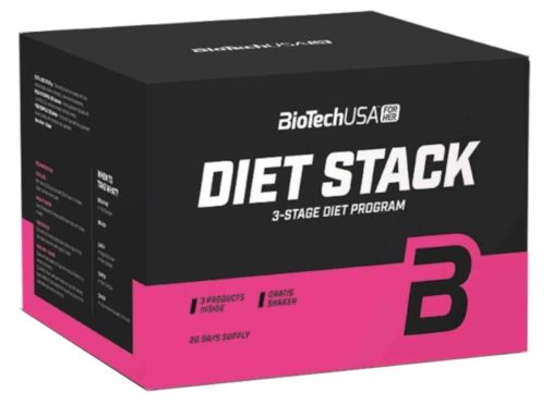 Diet Stack de BioTech USA es un paquete con tres suplementos diferentes enfocados a facilitar la pérdida de peso de las chicas.