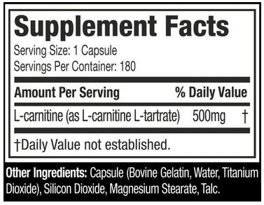 - Proporciona 500 mg de L-carnitina (como L-carnitina L-tartrato) por dosis de 1 cápsula.