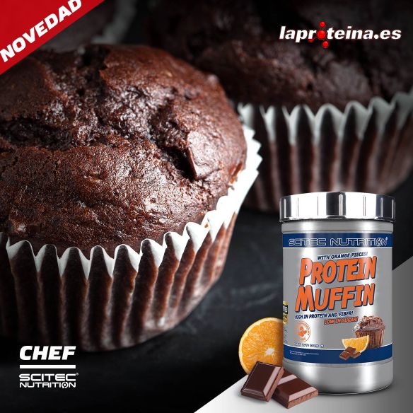 Protein Muffin de Scitec Nutrition es un suplemento en polvo con el que podrás preparar de forma sencilla unas deliciosas magdalenas de chocolate con trozos de naranja o de chocolate blanco con coco y trozos de fresas altas en proteína y en fibra pero bajas en azúcar al mismo tiempo.